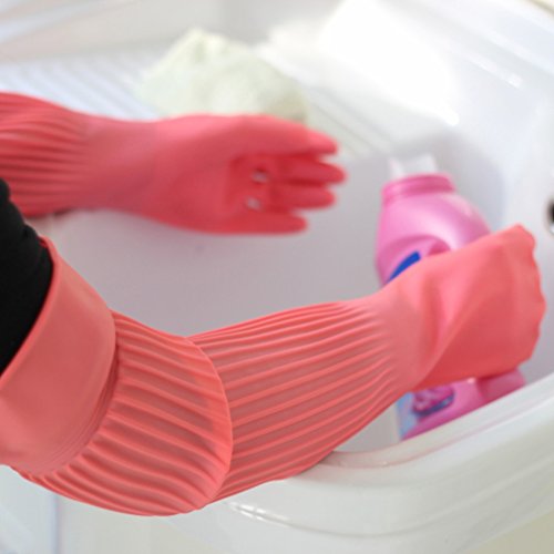 SYROVIA Reusable Waterproof Household Gloves Arms Length Rubber Latex All Purpose Cleaning Long Glove Kitchen Natural Rubber Living Wash Gloves