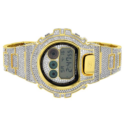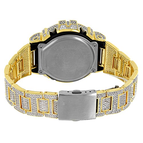 -. Title : G Shock Gold Finish Steel Back Digital Bling Icy Brand Watch