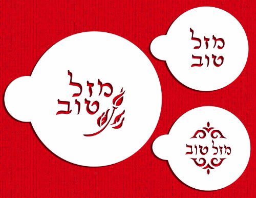 Designer Stencils C572 Mazel Tov Hebrew Cookie Stencil Tops, Beige/semi-transparent