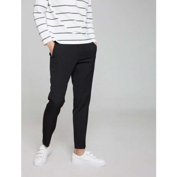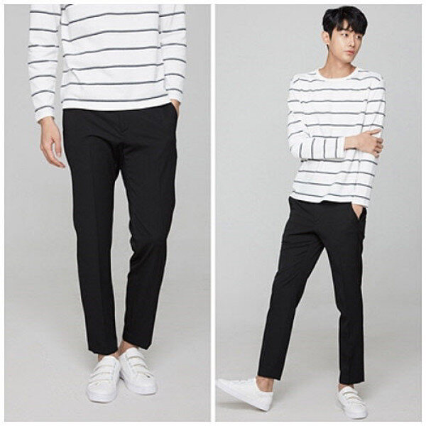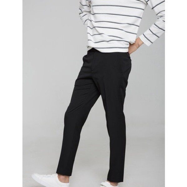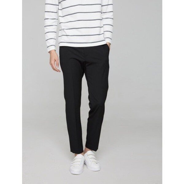 블랙 세련된 테이퍼드핏의 팬츠로 베이직한 컬러웨이를 선보입니다 시즌에 구애받지 않는 기본 디자인의 팬츠입니다