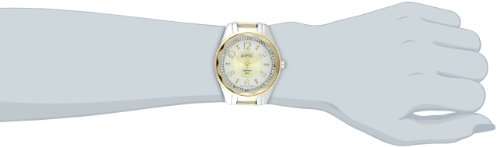 -. Feature : 12 genuine diamond and Arabic numeral hour markers / Row of crystals along the bezel / Silver-tone & Gold-tone case and bracelet / Swiss Quartz movement / Water-resistant to 10 M (33 feet) / Not water resistant
