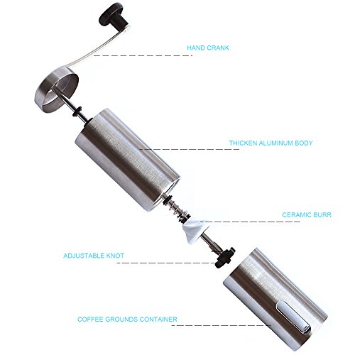 Coffer Grinder - The cofee grinder is made of high quality stainless steel. Internal conical burrs are made of new generation ceramic. Plastic piece inside ceramic burr are made from soft and durable Nylon.