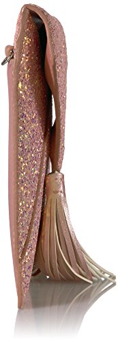 The Fix Izzi Glitter Envelope Clutch with Chain Crossbody Strap, Aurora Blush