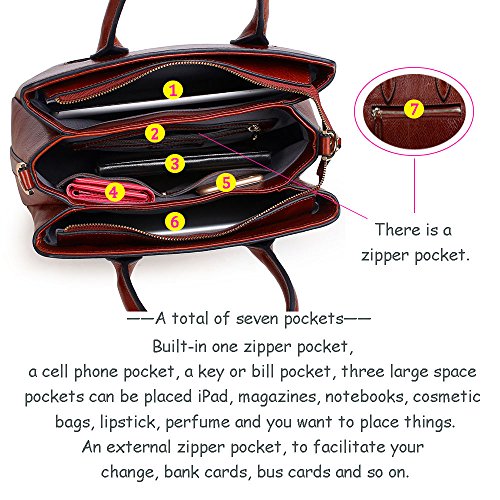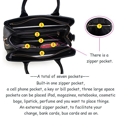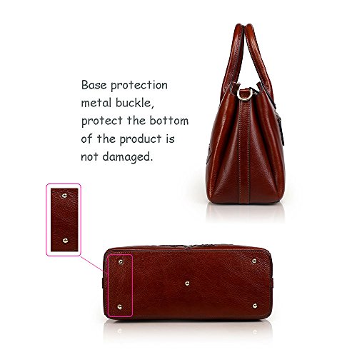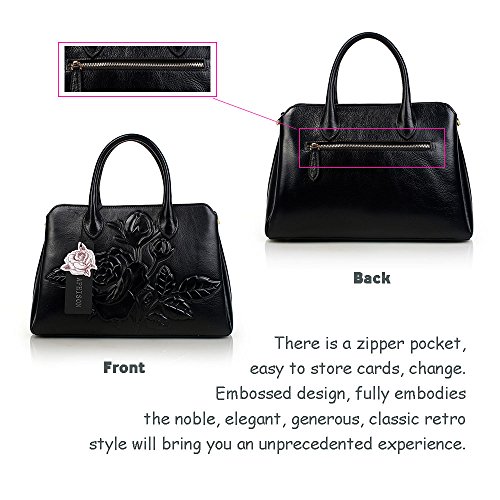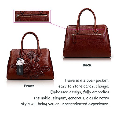 -. Feature : MATERIAL: 100% Genuine leather,fabric lining. / CLOSURE: Top Zipper Closure / DIMENSIONS: 13.7"L x 5.9"W x 9.4"H, Shoulder Strap Length: 46". / INTERNAL: Roomy with 1*back zippered pocket,1*interior zipper pocket. 3*interior compartments. 2* interior compartments open pockets for keys/card/phone. All stuff can be well organized inside. / FEATURES: Features embossed design, Detachable Shoulder Strap and Top-zipper Closure.