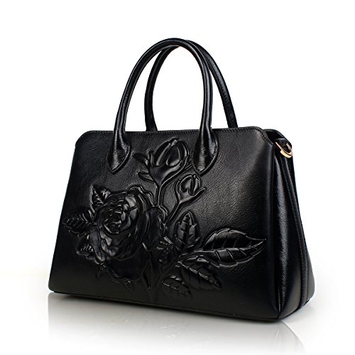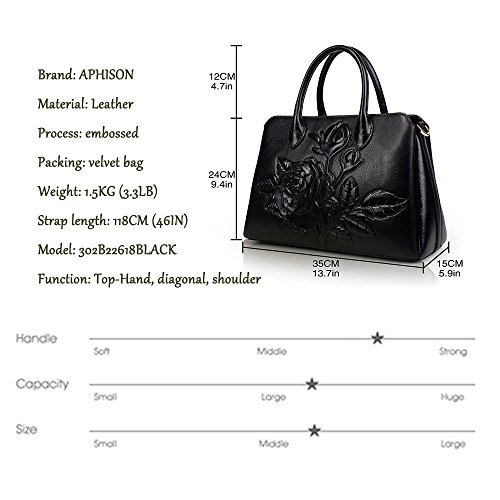 -. Title : APHISON Designer Unique Embossed Floral Cowhide Leather Tote Style Ladies Top Handle Bags Handbags