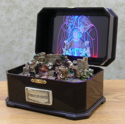 Title : Nativity Christmas Holiday Music Box Lighted with Holy Family Plays Tune Silent Night - 8 by 5 Inch