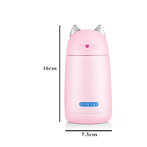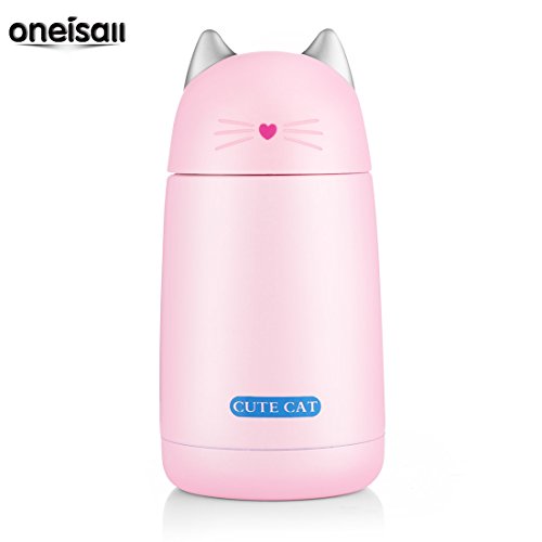 ONEISALL SB60239 330ML Leak-proof Cat Tumbler, Cute Cat Thermos Mug, Stainless Steel Drinkware Thermos Kids Cat Water Bottle (Pink)