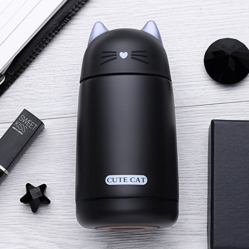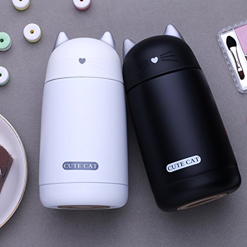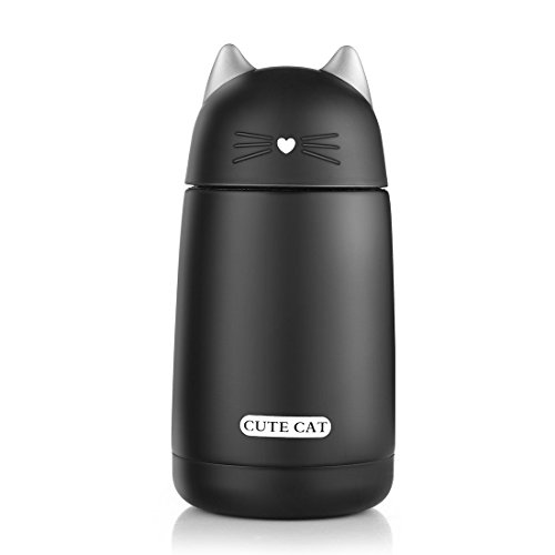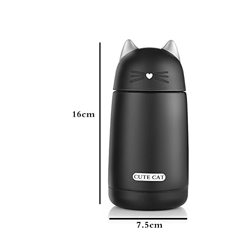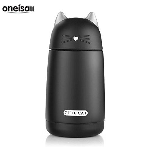 ONEISALL SB60239 330ML Cute Cat Thermos, Leak-proof Cat Tumbler, Kids Thermos Bottle (Black)