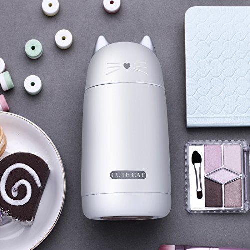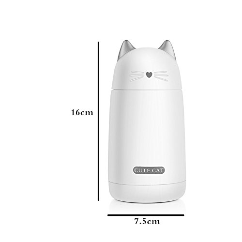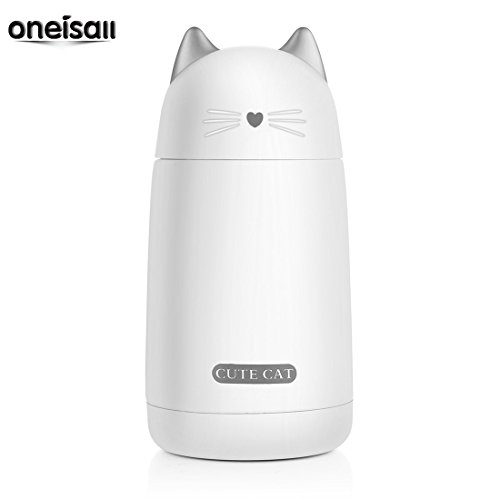 ONEISALL SB60239 330ML Leak-proof Cat Tumbler, Cute Cat Thermos Mug, Stainless Steel Drinkware Thermos Kids Cat Water Bottle (White)