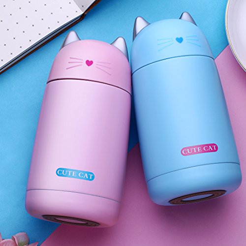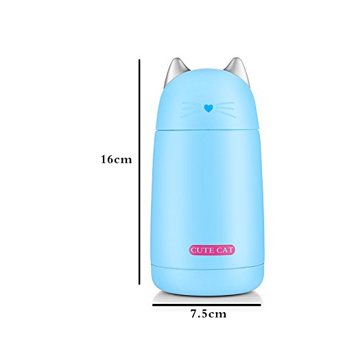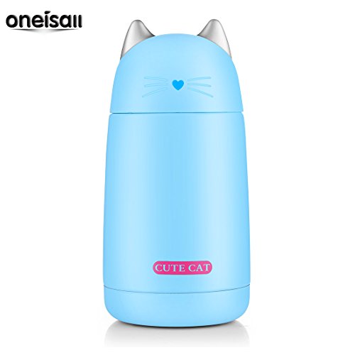 ONEISALL SB60239 330ML Cute Cat Thermos Mug, Drinkware Kids Water Bottle, leak-proof Cat Tumbler (Blue)