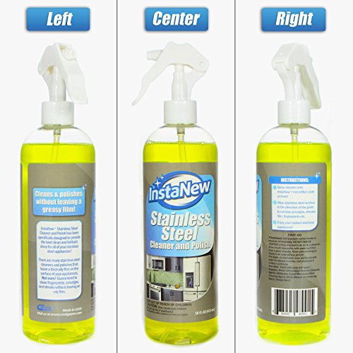 CLEANS WITH EASE: All you have to do is spray our cleaner onto the InstaNew microfiber cloth or towel. Then wipe stainless steel surface in the direction of the grain to remove smudges, streaks, film, fingerprints, etc. Enjoy your radiant stainless appliances! It is also packaged in a convenient trigger spray bottle that allows our formula to cling to vertical surfaces and applies evenly for a uniform shine with minimal wiping and buffing.