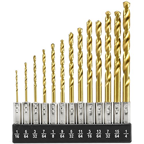 - Set includes 1/16", 5/64", 3/32", 7/64", 1/8", 9/64", 5/32", 11/64", 3/16", 13/64", 7/32", 15/64" and 1/4" size drill bits