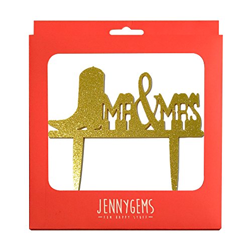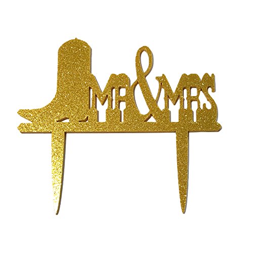 SIZE & PACKAGING: Sturdy Acrylic Gold glitter cake topper will stand out at your country themed reception. Measures 6" x 6" and comes in a beautiful coral gift box as pictured.