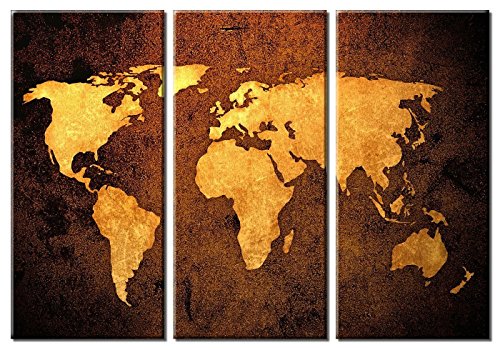 -. Title : Ode-Rin Art - 100% Hand Painted Retro World Map 3 Pieces Wall Art Old Abstract Map Framed Oil Painting for Living Room Home Decorations, Ready to Hang - (14"x28" x 3 Panels)