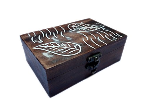 Antique Handmade Wooden Decorative Box Jewelery Box with Velvet Inside / Urn for Women Men | Storage & Organizer By Hind Handicrafts (Leaves Engraving)