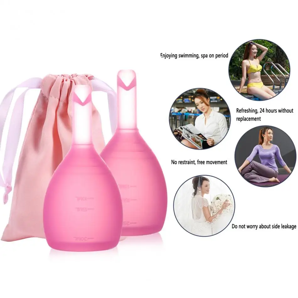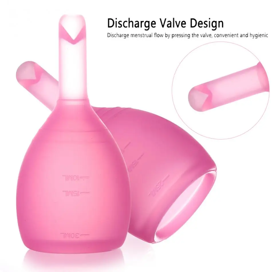 Women Reusable Soft Medical Silicone Lady Discharge Valve Menstrual Cup Leak Free Safety Menstrual Month Period Cup Vagina Care