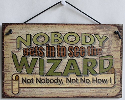5x8 Vintage Style Sign Saying, "NOBODY gets in to see the WIZARD Not Nobody, Not No How!" Decorative Fun Universal Household Signs from Egbert's Treasures