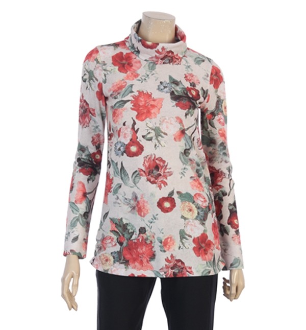 JOHANEX, 러블리한 감성을 연출하는 플라워 프린팅이 전체적으로 들어가있어 여성스러운 티셔츠 입니다