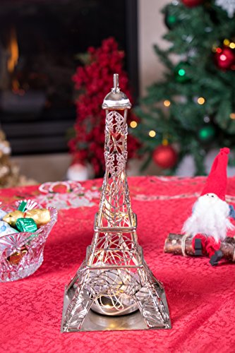 Eiffel Tower Shaped Decorative LED Candle Holder by Clever Creations | Metal Design Fits Any Decor Theme | Includes LED Light String | Stainless Steel | Measures 4" x 4" x 9.5" | Battery Powered