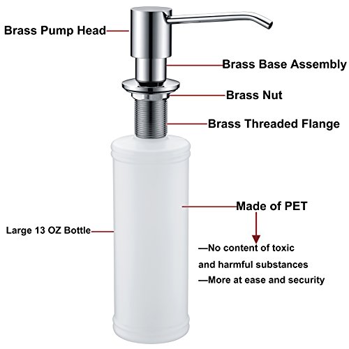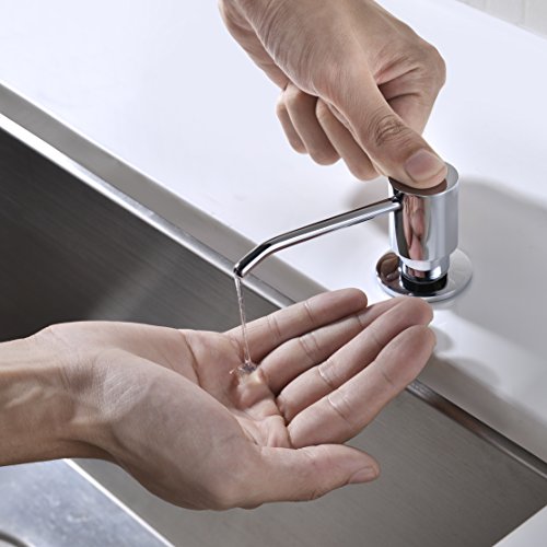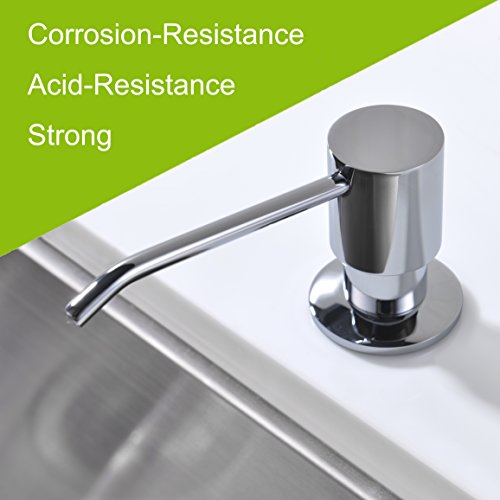 WENKEN Best Brass Deck-Mounted Countertop Kitchen Sink Soap Dispenser with 13-Ounce Capacity, Modern Lotion Dispenser , Chrome