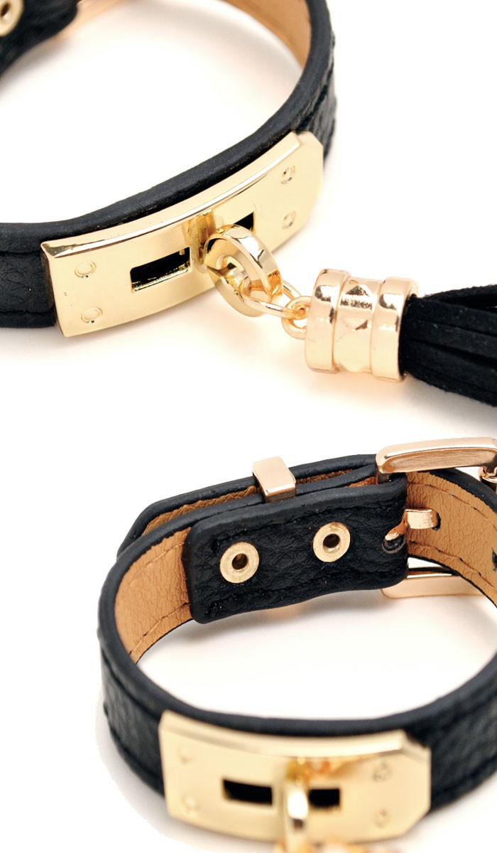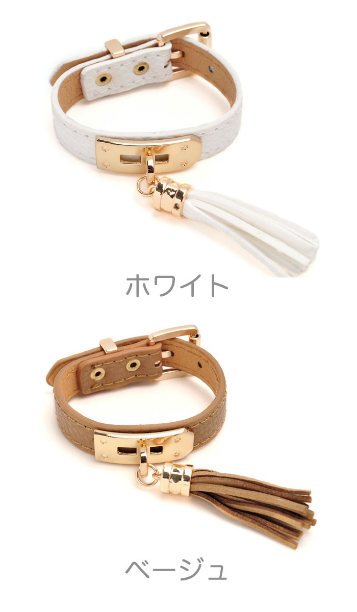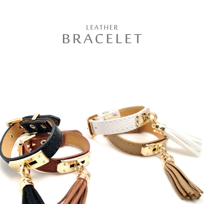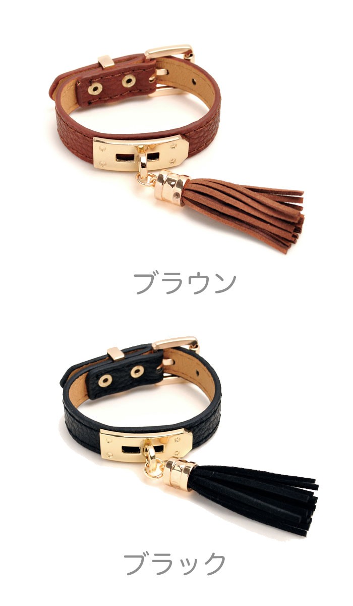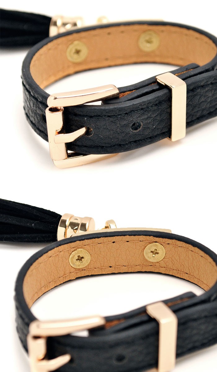 しなやかな毛並みの、タッセル付きベルト型レザーブレスレット
