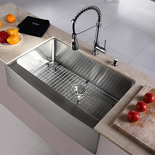 Kraus KHF200-33-KPF1612-KSD30CH 33 inch Farmhouse Single Bowl Stainless Steel Kitchen Sink with Chrome Kitchen Faucet and Soap Dispenser