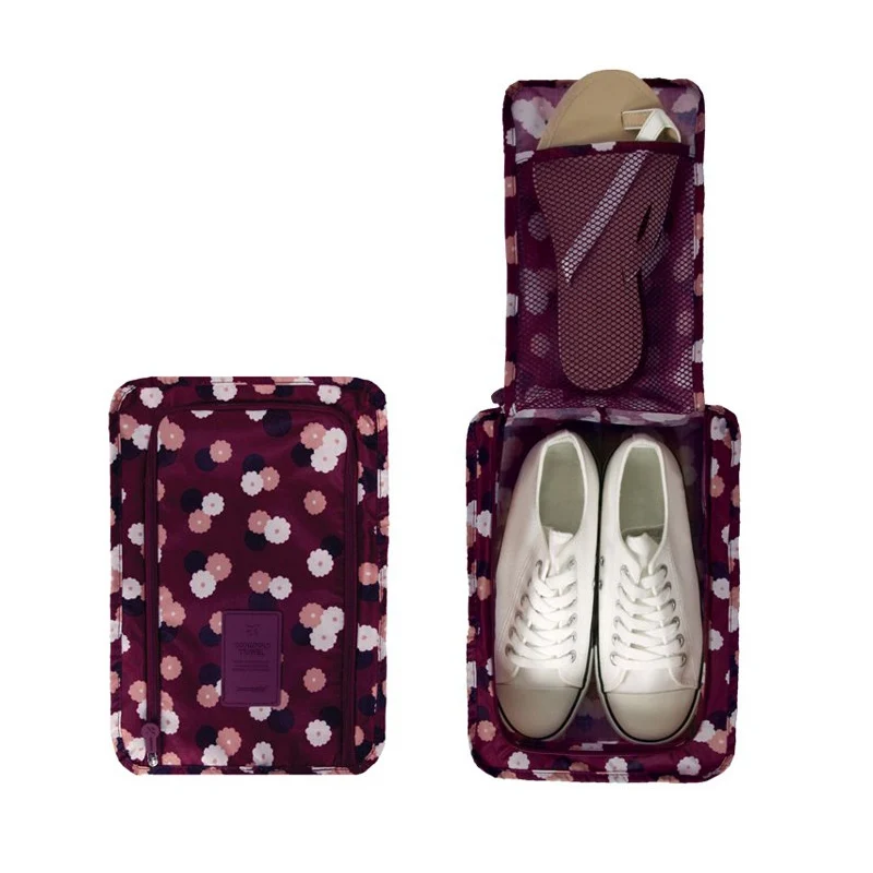 Color:Wine red flowrs,Blue flowers,red stars,navy stars Travel Shoe Bag,
