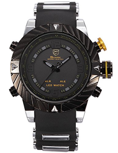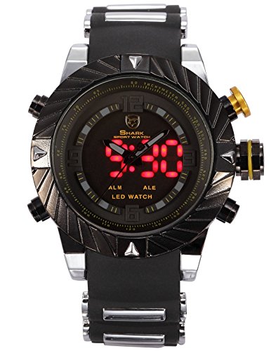 -. Binding : Watch -. Brand : Shark -. Department : mens -. EAN : 0707273868886 -. Feature : The watch is located in USA, fast delivery,free shipping / Genuine Shark Brand Sport Watch with Official Gift Box / Precise Japanese Quartz Movement Along with Soft Silicone Band / Perfect gift for men, sport lovers / All items go with 12 months free International warranty -. Label : MIX&ROCK -. Manufacturer : MIX&ROCK -. Model : CAN_SH168_ALOHA -. MPN : CAN_SH168_ALOHA -. PackageQuantity : 1 -. PartNumber : CAN_SH168_ALOHA -. ProductGroup : Watch -. ProductTypeName : WATCH -. Publisher : MIX&ROCK -. Studio : MIX&ROCK -. Title : Mix&Rock SHARK Goblin Silicone Strap Black Quartz LED Dual Display Army Sport Watch -. UPC : 707273868886