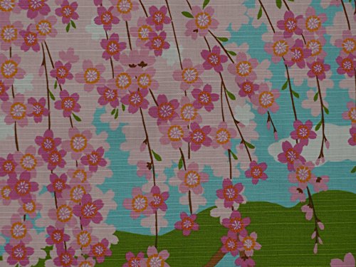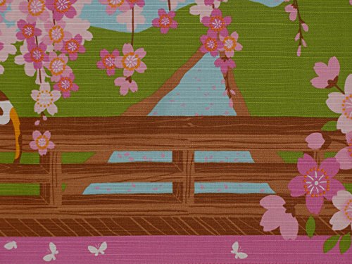 Furoshiki Cat on Bridge with Cherry Blossoms Motif Japanese Fabric 50cm