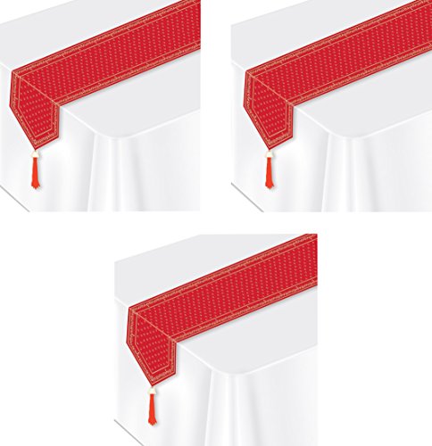 Studio : Beistle Publisher : Beistle Binding : Kitchen Product Description Beistle S54471AZ3 printed bandana table runner. The package contains 3 table runners. These table runners are printed on card stock paper with a bandana Print. They have pointed ends with Red tassels attached. Each table runner measures 11 inches long by 6 feet wide. Decorate your tables with these table runners at your next western themed party! 0