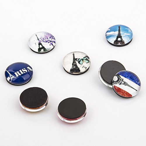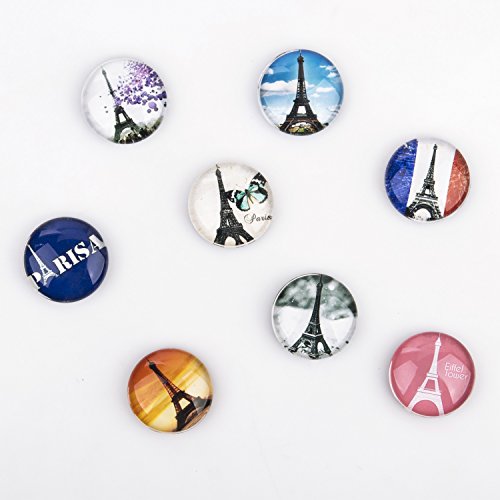 Tora Dola Hand-made Fridge Magnet, Crystal Glass French Paris Eiffel Tower, Home Decoration, Set of 8