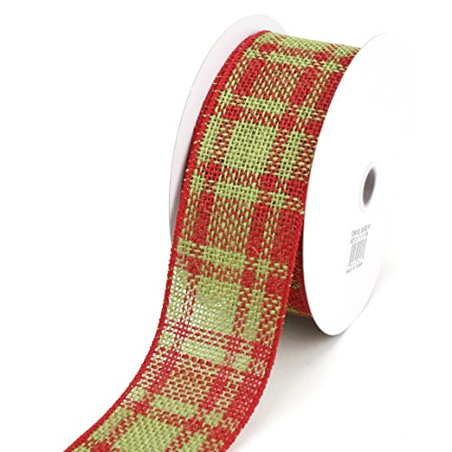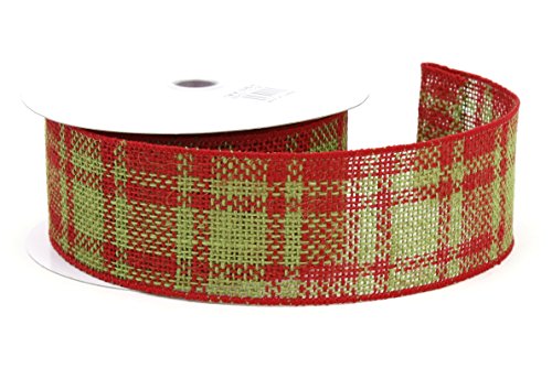 Kel-Toy Wired Jute Burlap Ribbon, 2.5-Inch by 10-Yard, Red/Green Plaid