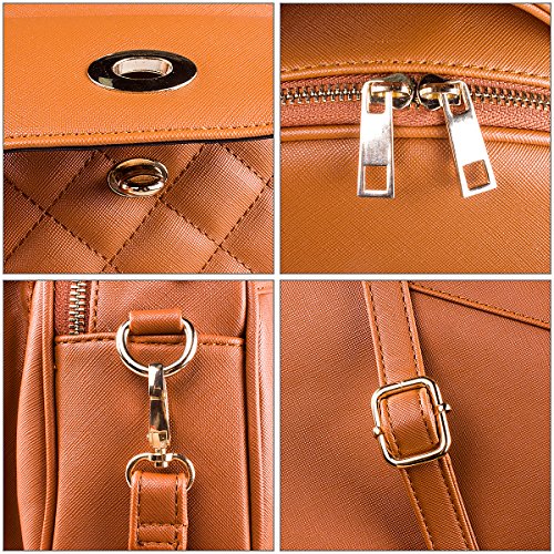 S-ZONE Stylish Plaid Mini Leather Handbag Backpack With Shoulder Straps For Women Material: High quality PU leather, polyester lining