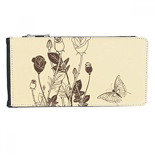 (DIYthinker)/Accessories/Wallets, Money Key Organizers/DIRECT FROM USA/Rose Butterfly Leaves Flower Plant Multi-Card Faux Leather Rectangle Wallet Card Purse Gift