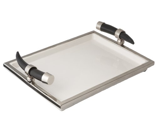 Lazy Susan White Ceramic Tray with Horn Handles, Large