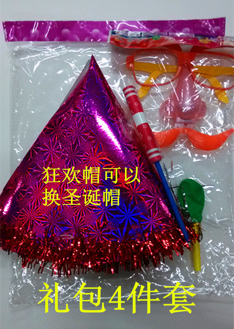Christmas Goodies four sets: a carnival hat, glasses, a clown, a magic wand, a dragon blowing balloons