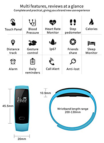 ★【Your Private Health Helper】The fitness bracelet can display the time, steps, distance and calories clearly, notifications, it has remote camera control, anti-loss alert, and a sedentary alert with OLED display. It has a waterproof rating of IP67(works under water up to about 1 meter) suit for swimming.