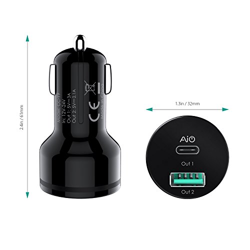 AUKEY Car Charger with 5V/3A USB C & 5V/2.1A Dual Port for Google Pixel / XL, Nexus 5X / 6P, Nintendo Switch, iPhone 7 / Plus and More