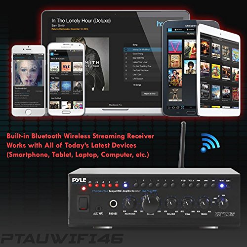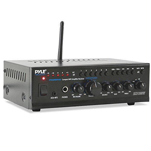 Pyle WiFi Stereo Amplifier Receiver Professional Home Theater Audio System Wireless Bluetooth Connectivity AUX MP3 Music Streaming 1/4'' Input & Microphone Paging/Mixing Control 240 Watt (PTAUWIFI46)