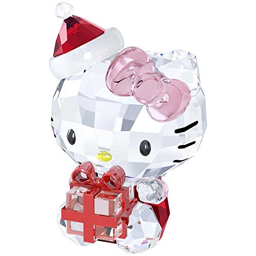 This festive edition of the famous Sanrio character will make wishes come true. Shining in various crystal colors, Hello Kitty celebrates the holiday season wearing a Santa's hat and holding a delicate Christmas gift. A Christmas treat to remember! Decoration object. Not a toy. Not suitable for children under 15. Measures 2" x 1 3/8" x 1 3/8"