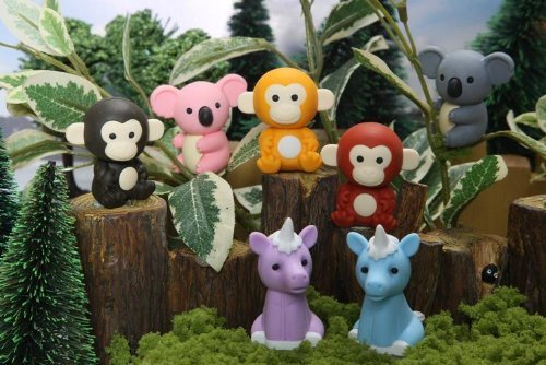 -. Feature : Iwako erasers / Made In Japan / the set comes with 3 monkey erasers, 2 unicorn erasers and 2 koala erasers / the color of the erasers may vary.