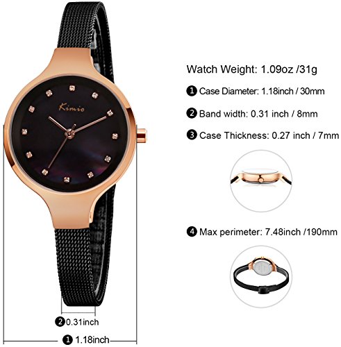 EXQUISITE ADJUSTABLE BAND: slim 8mm width mesh band is smooth and comfortable, this feminine watch will come with a metal adjust tool, very easy and convenient to adjust the band length