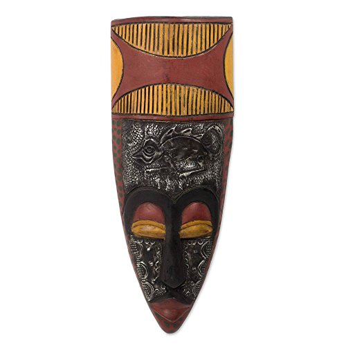 NOVICA Decorative Artisan Crafted Wood Mask, Red 'Big Headed Linguist'