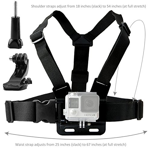 CHEST MOUNT IS FULLY ADJUSTABLE AND SUITABLE FOR ALL SHAPES AND SIZES: Waist strap adjusts from 25 inches (slack) to 67 inches (at full stretch). Shoulder straps adjust from 18 inches (slack) to 54 inches (at full stretch).