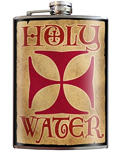 - Have a sip of "Holy Water" with this sanctified flask. Comes in handy for fighting vampires as well. Drink with style...