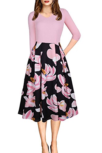 -. Feature : The Fabric Is Very Soft And Stretch with textured touch feeling , smooth inside, comfortable to wear / Zipper closure / V Neck,3/4 sleeve,Half Sleeve, Floral P.R.Int in the Bottom,Zipper at the back, Hidden Pockets In Side, Knees Length,Swing dress,Vintage Style?Slim Waist Style, Fit and Flare, Patchwork,A-line dress, Midi dress,Ball Gown / Great For Cocktail, Prom, Dancing Party, Evening Club, Office and Casual Occasion
