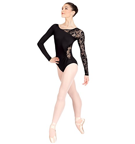Adult Long Sleeve Leotard with Lace Sleeve and Insert,N8650