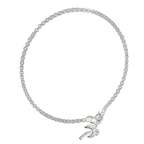 -. Title : Sterling Silver 10inch Solid Polished Palm Tree Anklet ITALY