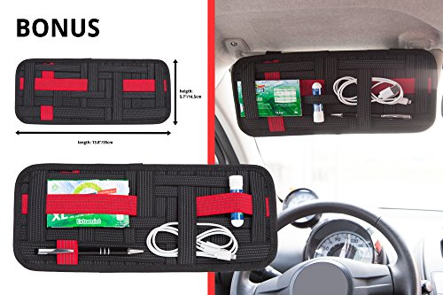 Each one of our zippered file totes comes with a bonus car visor organizer! The visor accessory various straps that let you store all your essentials.