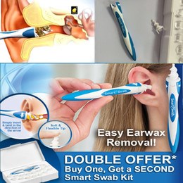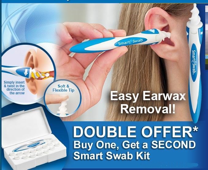 Don't let ear wax buildup impair your hearing or cause infections! The innovative Smart Swab™ soft spiral ear cleaner cleans your ears comfortably and safely. Typical cotton swabs push wax further into the ear canal. Smart Swab's soft, spiral grooved head goes the perfect distance in the ear. With a simple twist, it safely grabs and extracts wax without injury. Includes handle and 16 disposable replacement swabs.